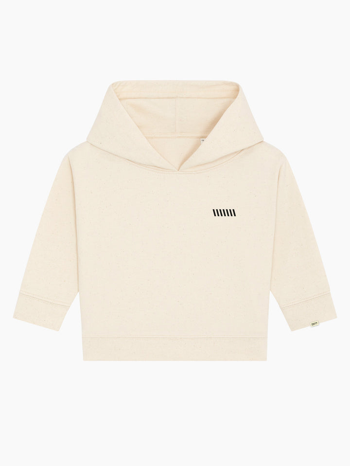 La felpa con cappuccio di Produzione Lenta, in versione per bimbi piccoli! Unisex e dalla vestibilità adatta ai più piccini, con apertura per la testa ancora più larga!